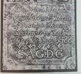 In 17th and 18th century we often see the letters SAGDG on tombstones (picture 1). This stands for "Sua Alma Goze Da Gloria", which mans His Soul Enjoys Glory. This is a translation of the common Hebrew text found on many tombstones: תנצבה, which stands for תהי נשמתתו צרורה בצרור החיים Some end 19th century - early 20th century tombstones have the letters