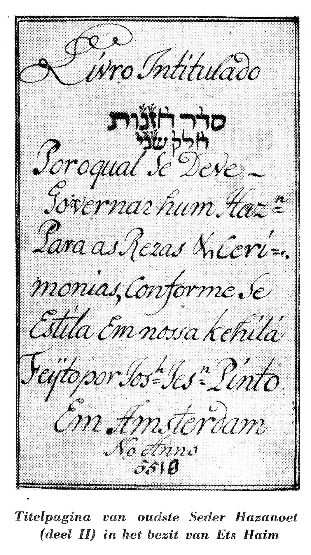 Seder ChazzanutSeder Chazzanut describes the unique Nusach of the Amsterdam Portuguese community. Up till 1950, various hand-written booklets (manuscripts) existed, made by Chazzanim and Shamashim for their own use. The oldest versions are in Portuguese. In later versions the Hebrew and Dutch language were used. List of pdf documents (described in text below)