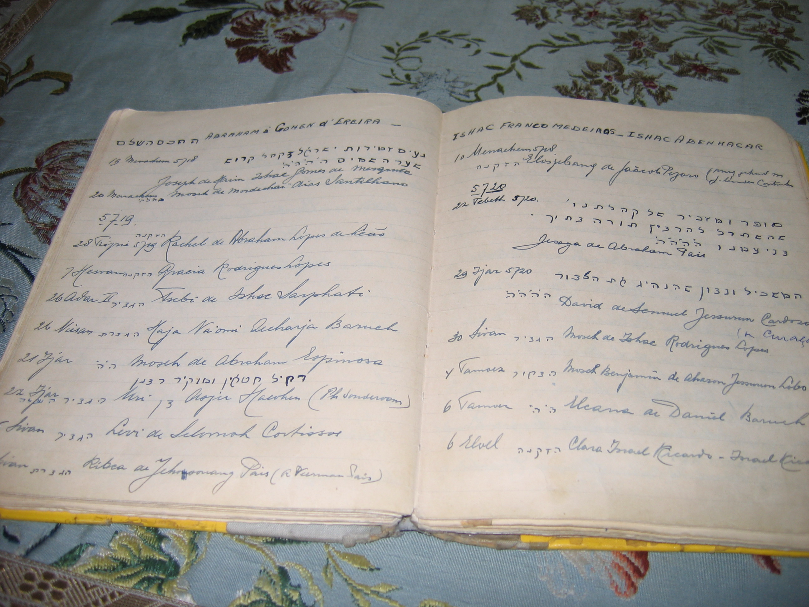 Hashcavah on their annual Memorial Day. The names are written on the left page.